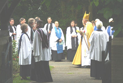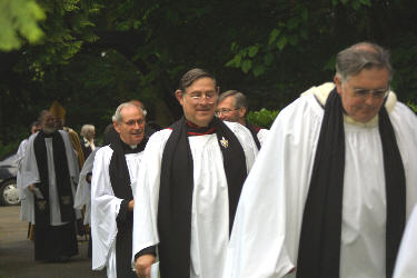 The Bishop and Clergy congregating outside the Church for the procession
