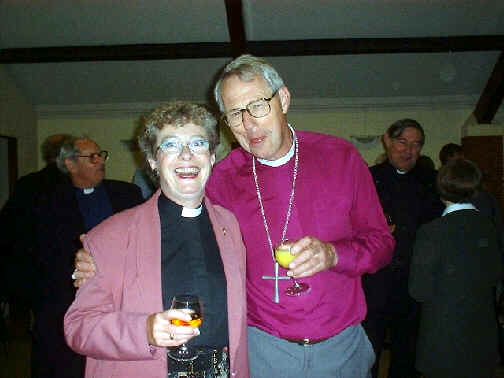 Joy and the Bishop enjoy a joke together Joy's husband Geoff and friend Jean