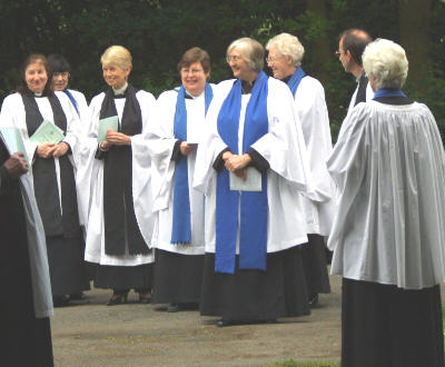 Joy entering the Church before the service Just some of the female Clergy present.