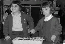 Cake being cut by youngsters of the new Slip End School Foundation Unit