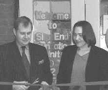 Headteacher Cori Fisher, with Councillor Richard Stay cutting the ribbon.