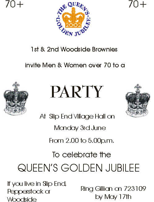 Surely there must be someone with some photographs of Slip End approximately fifty years ago. I have found one of the St Andrew's Choir, printed below - don't they look different? Hopefully some will turn up for the special edition next month to celebrate the Queen's Jubilee. I have some photos of the party that were taken at the silver anniversary twenty five years ago at the Village Hall and wonder how many children are still in the village or nearby. I hope to be printing some next month. Please let me know if you have any we could use.