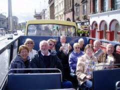 The sun was shining, much to our surprise and the motley crew of 12 made their way to join the queue for a tour of the city on an open top double decker bus.